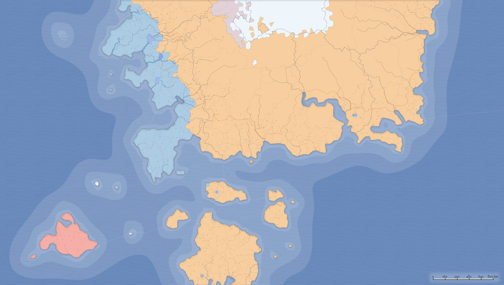 Then I just slot in stuff that seems fun and plausible. A Germanic namebase for the coastal region where a good chunk of the former vassal states are situated (including the aforementioned peninsula) and a greek one for a large southern island, that should do it - no need to go overboard.